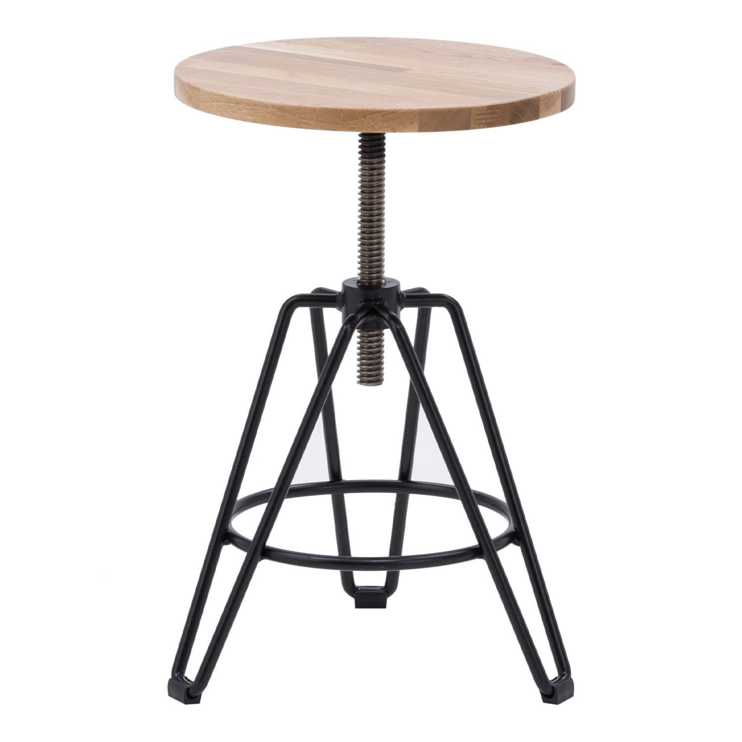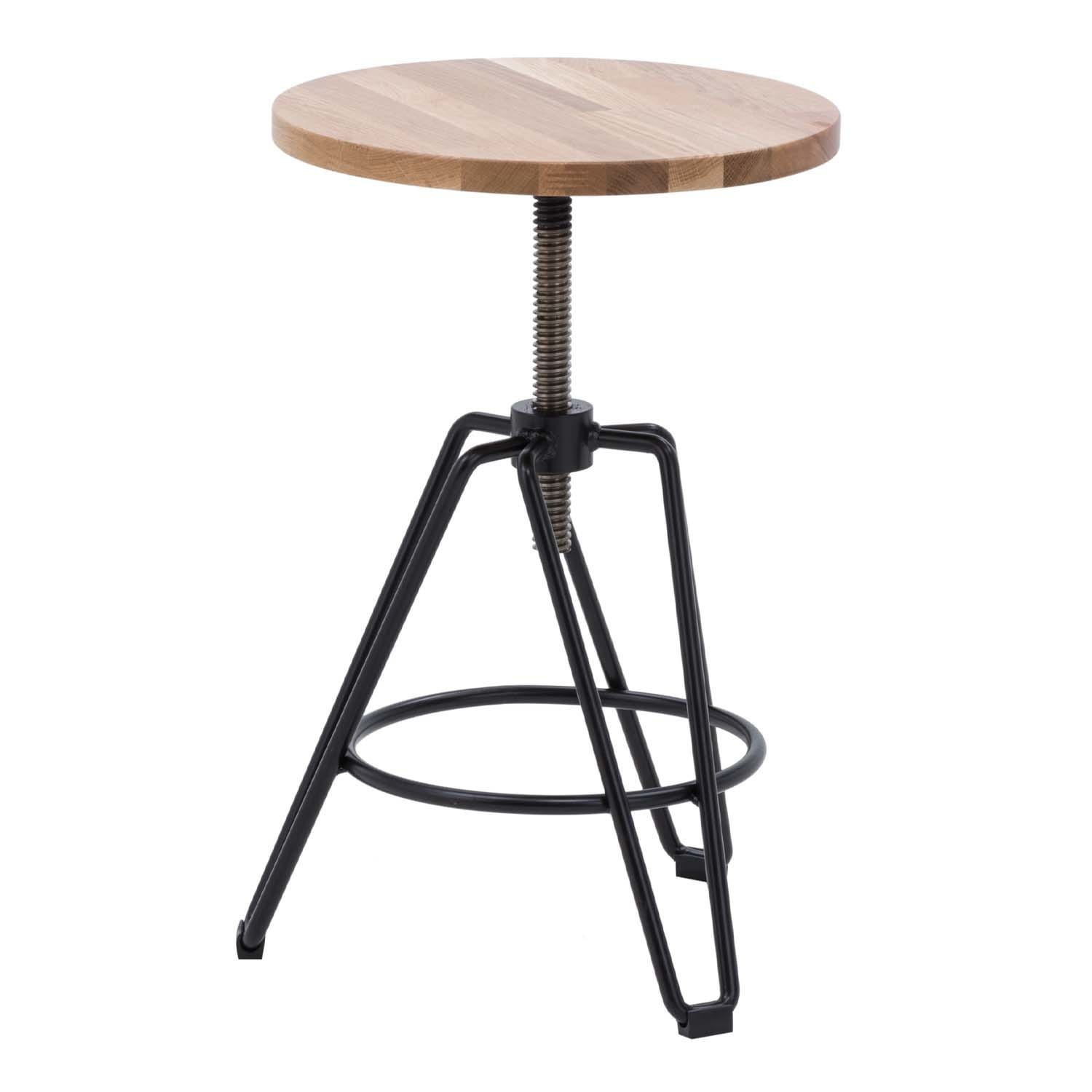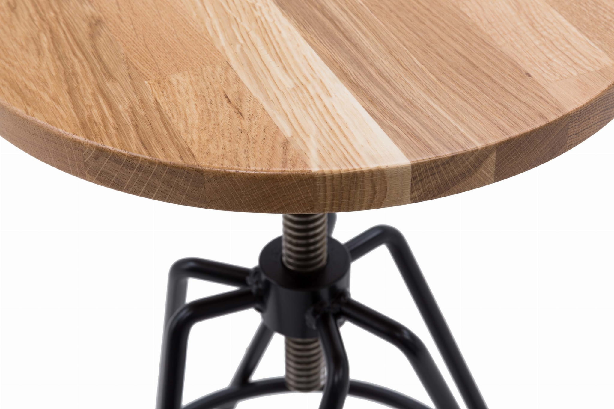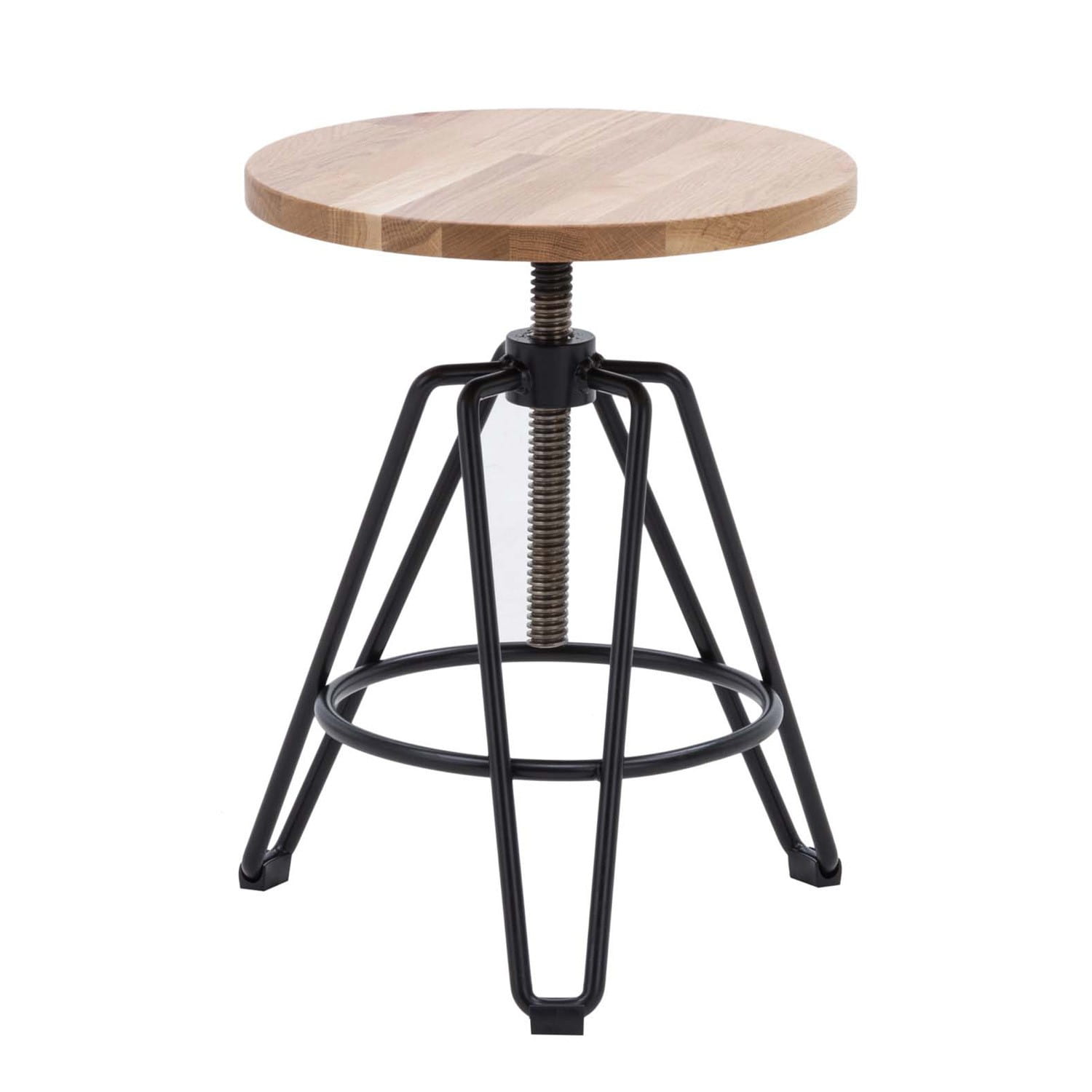 Taboret TOLIN I posiada możliwość regulacji wysokości siedziska; z podnóżkiem. Siedzisko dębowe.